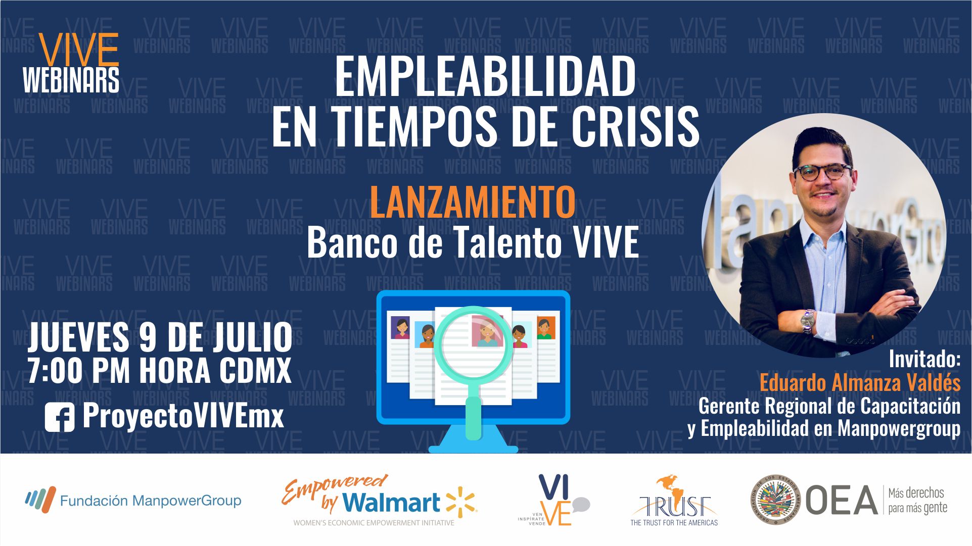 Buenas tardes! El día de mañana (9 de julio) tendremos un webinar con el tema "Empleabilidad en tiempos de Crisis" con una entrevista a Eduardo Almanza, Gerente de Capacitación y Empleabilidad de ManpowerGroup. Vamos a Lanzar el Banco de Talento, que es una herramienta para conocer las necesidades de empleo de nuestras beneficiarias y vincularlas a potenciales empleadores, la cual esperamos esté disponible para las personas egresadas de POETA pronto.