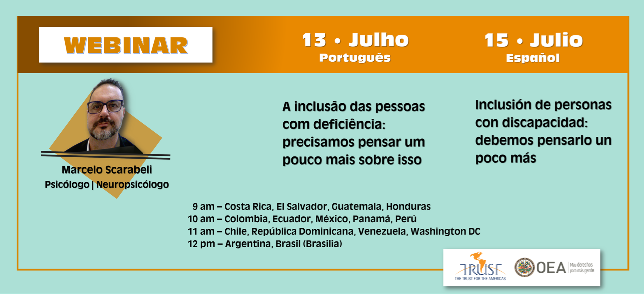 (PT) Este é nosso recordatório para o evento A INCLUSÃO DAS PESSOAS COM DEFICIÊNCIA: PRECISAMOS PENSAR UM POUCO MAIS SOBRE ISSO a ser realizado segunda-feira, dia 13 de julho às 12 horas - horário Brasilia (idioma português).