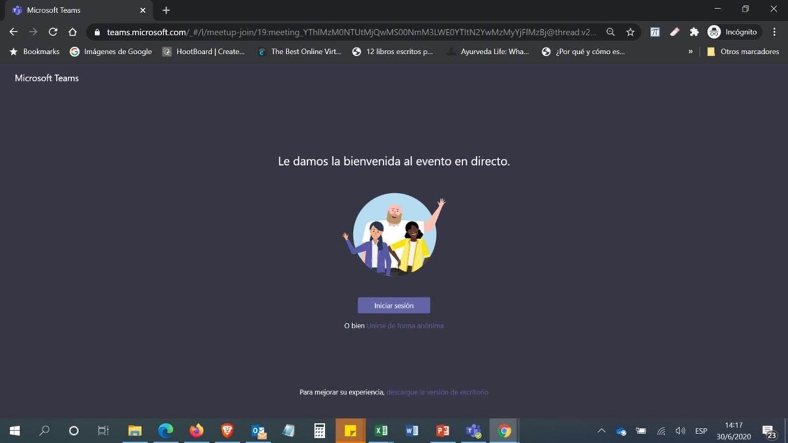 - acceder al evento directamente en tu computadora (si ya tienes Teams instalado).