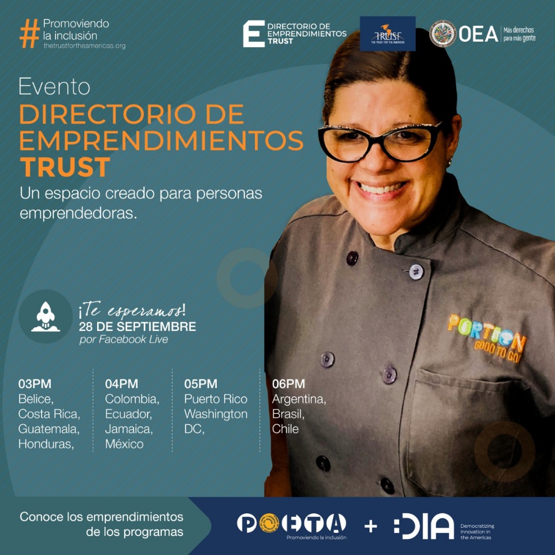 En este evento, con mucha alegría, tendremos la fortuna de mostrarles esta gran herramienta que ha sido desarrollada para potencializar y visibilizar los emprendimientos de las personas egresadas de los diferentes proyectos implementados por The Trust for the Americas, para dar a conocer sus productos/servicios y también, crear comunidad entre emprendedores y emprendedoras a lo largo de toda América Latina y el Caribe.