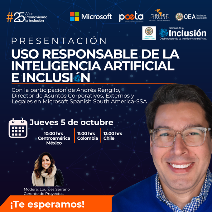 ¡Una conversación imperdible te espera! Únete a nosotros en la entrevista "Uso Responsable de la IA e Inclusión" con el destacado experto Andrés Rengifo de Microsoft. Descubre cómo utilizar la Inteligencia Artificial para promover la equidad e inclusión. ¡No te lo puedes perder!