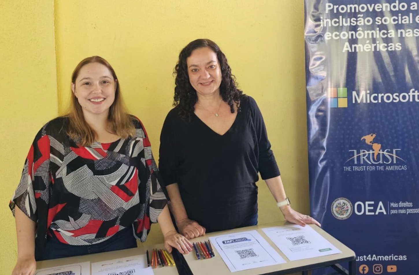 Neste mês, a equipe do The Trust for the Americas participou da quarta edição do evento Mundos do Trabalho, organizado pelo Instituto Federal de Educação, Ciência e Tecnologia de São Paulo (IFSP), campus Hortolândia. Fátima Galeazzo, Gerente de Projetos no Brasil, e Laura Kretly, Oficial de Projetos & E-learning, conduziram uma palestra sobre IA e seu impacto no mercado de trabalho. A apresentação abordou as principais tendências tecnológicas e como elas estão transformando as profissões do futuro.